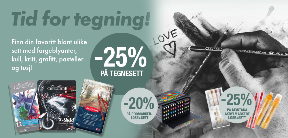 Vi har det du trenger innenfor kunstmaling og utstyr, tegning og illustrasjon, papir, kartong og lerret, trykketeknikker, modellbygging og form og utstyr til studioet!