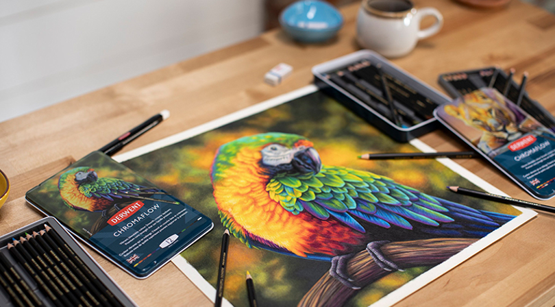 Chromaflow er Derwents siste tilskudd i deres fargeblyantfamilie. Det er en rimelig fargeblyant med myke, klare farger som er lett å blande. De sterke fargene skiller seg ut selv på mørkt papir. Den myke, kremete kjernen gir en jevn, rask fargelegging som kan håndtere trykk og motstå brudd på spissen, noe som gjør det enkelt å blande farger og skyggelegge.