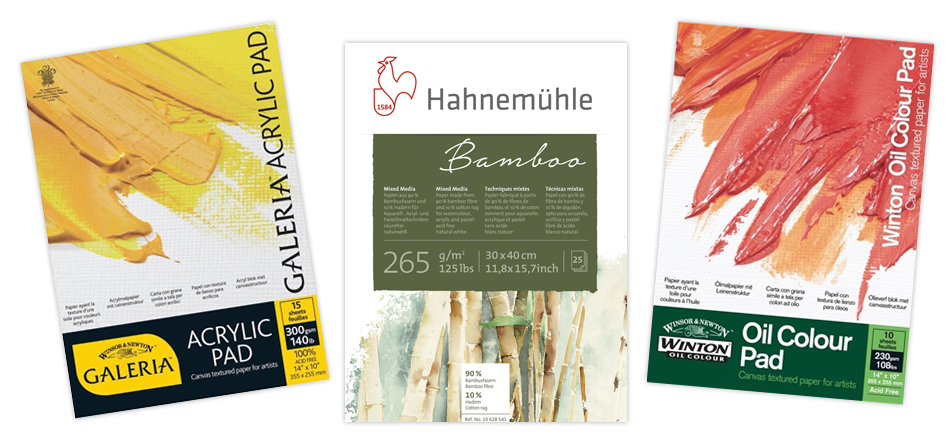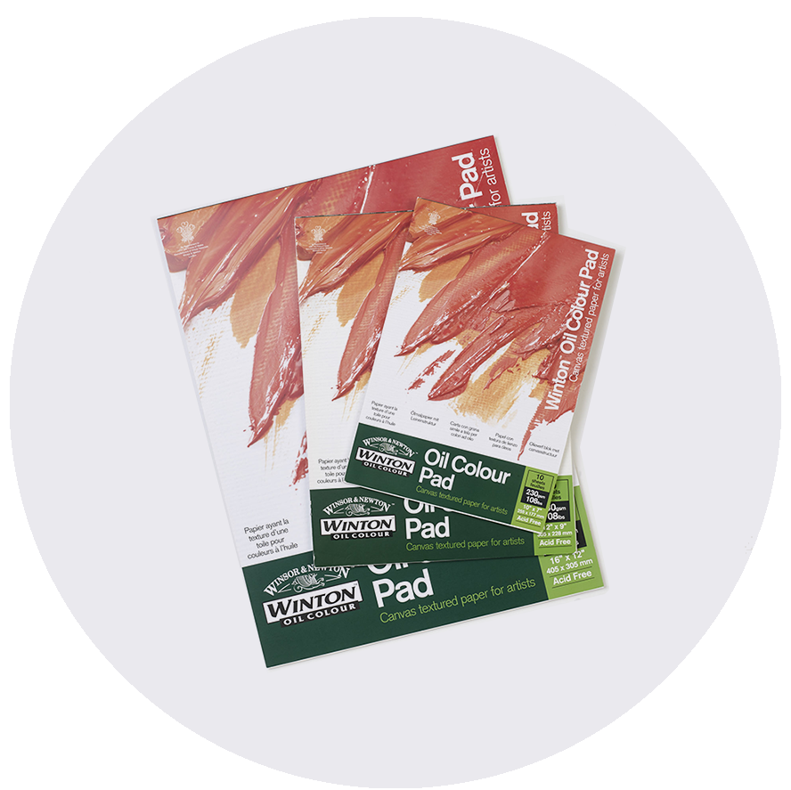 preparert papir med lerretspreg, spesielt laget for bruk av oljemaling. Winton oljeblokk finnes er i 230 gram, og finnes i A4 og A3-blokk