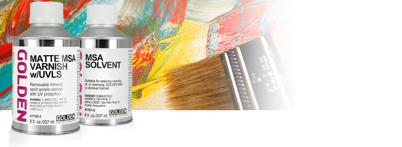 MSA Varnish med UVLS er en akryl harpiks på mineralsk terpentin basis. MSA ferniss danner en hardere, mindre gjennomtrengelig overflate enn de vannbaserte akrylfernissene. Den hindrer i høyere grad støv og smuss i å trenge ned i overflaten og legger seg som et meget jevnt, beskyttende lag over eventuelle ujevnheter. Den kan, når den er tørr, fjernes med mineralsk terpentin. Kan brukes både utendørs og innendørs. Fås som Gloss, Satin og Matte. Uegnet for barn.