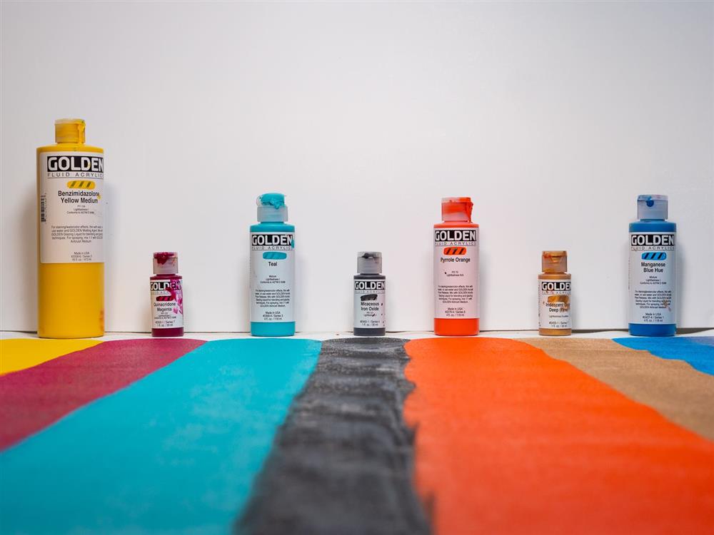 Golden Fluid Acrylics er en tyntflytende akrylmaling i kunstnerkvalitet. Golden Fluid er lysekte og har svært høy pigmentering. Den har samme fargeintensitet som Goldens velkjente Heavy Body, men en mye mer flytende konsistens, nesten som kremfløte.