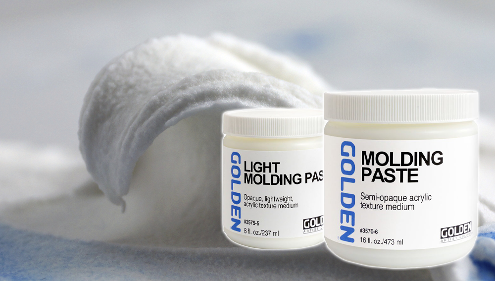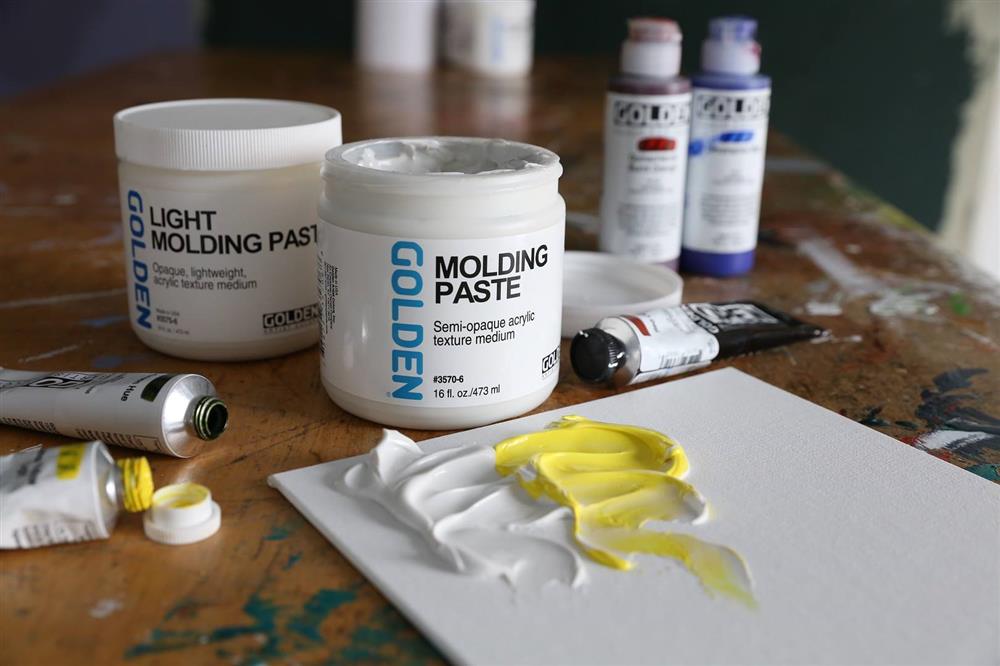 Golden Molding Paste kan brukes til å oppnå en rekke effekter og uttrykk. Når de brukes sammen med akrylmaling, utvides arbeidsegenskapene og de kreative mulighetene. I motsetning tl gels er pastaer ikke transparente, fordi de inneholder marmorstøv eller andre fyllstoffer som lager en hvit eller leireaktig overflate i varierende teksturer og egenskaper.