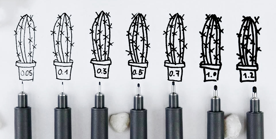 En sort fineliner er en klassiker, og du får de i mange ulike tykkelser fra Staedtler, Derwent, Aristo og Pilot. I tillegg får du finelinertusjer i farger fra Derwent og Staedtler.