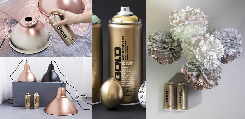 Montana GOLD spray er en matt akrylspray som vi lagerfører i over 120 farger. Selv om den opprinnelig er matt, har serien fem metalliske farger: Gold Chrome, Silver Chrome, Copper Chrome, Gold Matte og Silver Matte. Sprayen er svært dekkende, og ideell til bilder, men også til maling av gjenstander og møbler. Sprayen er vannfast og lysekte. Hva med å oppgradere møbler eller gammel julepynt?