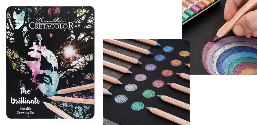 Cretacolor Megacolor "The Brilliants" er et sett med 12 høyt pigmenterte, metalliske fargeblyanter. De gjør seg spesielt godt på mørkere overflater. Fargeblyanten har en ekstra tykk mine på 6,4 mm og en myk og voksaktig fargepåføring.