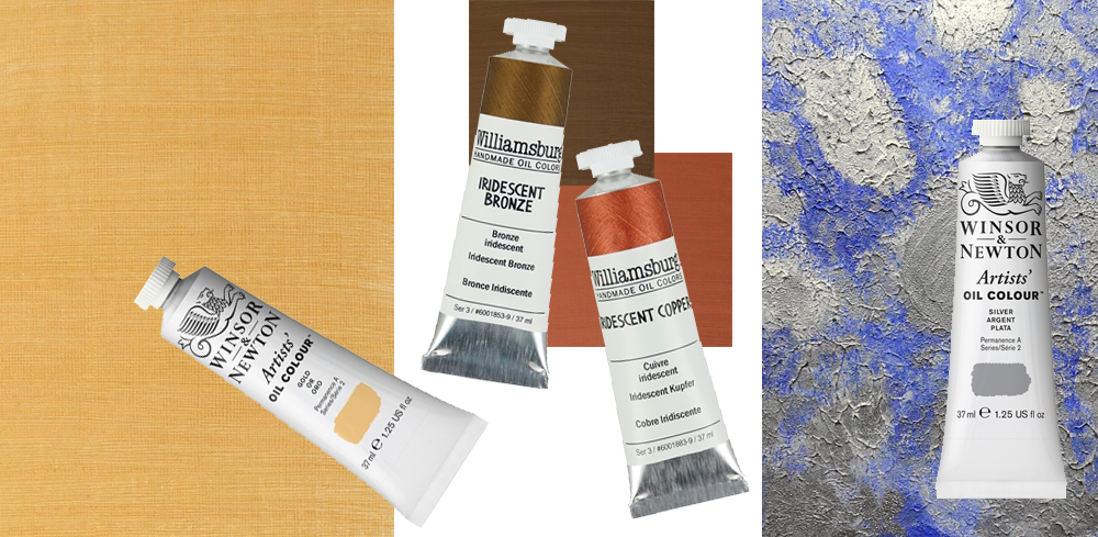 Gi oljemaleriene dine en metallisk effekt. Blanding av metalliske farger er in! Mal med sølv, gull, bronze eller copper i dine oljemalerier for ulike spennende og skinnende effekter. Du finner metalliske oljefarger i kunstnerkvalitet fra Williamsburg og W&N.