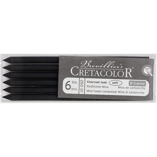 Tegnekullmine fra Cretacolor, Soft . Disse minene krever at du har en mineholderfor 5,6 mm mine. Se varenummer 3595128 og 3595155-7.