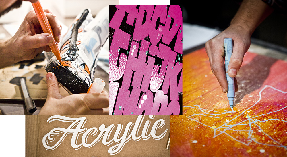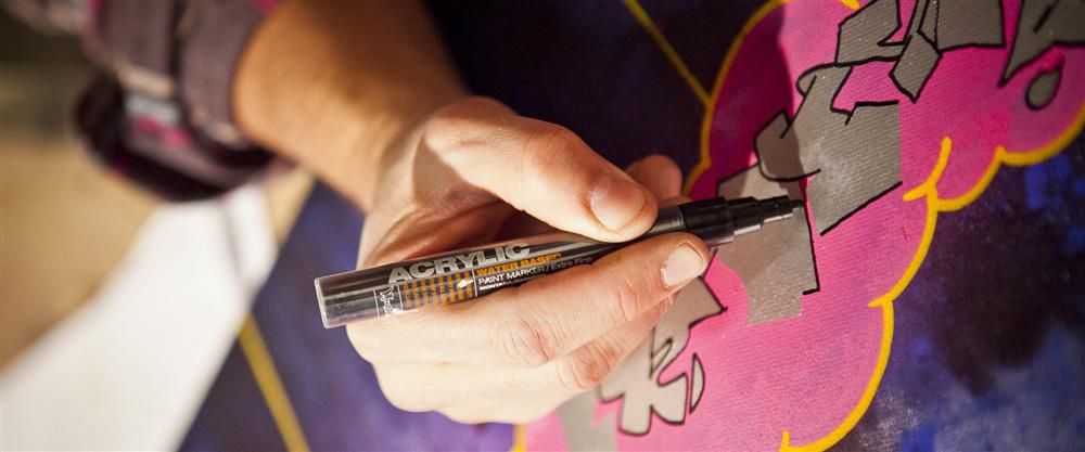 I tillegg til spraymaling finnes et utvalg akrylmarkere som kommer i 3 bredder, samt 2 farger i 30 og 50mm bredde. Markerne tørker til en matt overflate lik tørr spraymaling. Kommer i følgende bredder: 07,mm, 2mm og 15mm.