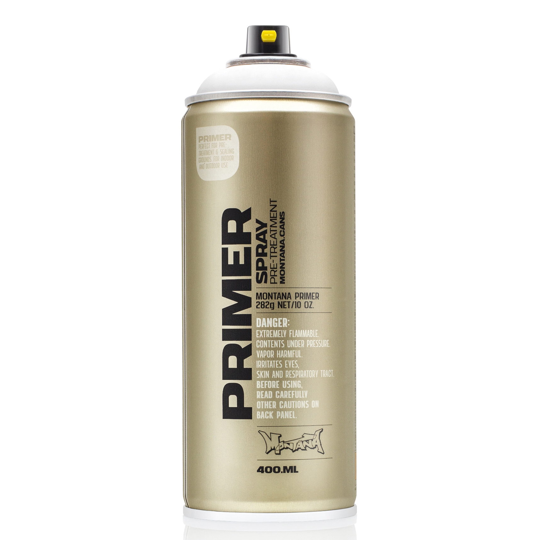 Montana Goldtech Universal Primer er en universell primerspray for ulike underlag. Den egner seg til plast, metal og styrofoam, samt lær, kartong, tre og mange andre materialer. CFC fri og blyfri. Påse at det er god ventilasjon og bruk verneutstyr som maske og hansker.
