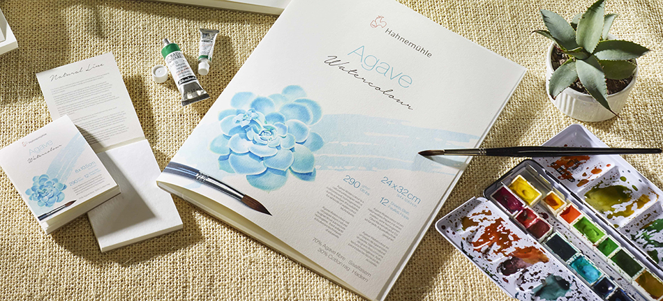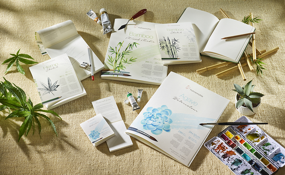 Med de nye papirinnovasjonene Agave og Hemp fokuserer Hahnemühle mer på ressursbesparende og miljøvennlige papirer. Hahnemühles Natural Line integrerer alle ressursbesparende papirer: Agave Watercolor, Hemp Sketch, Bamboo Mixed Media og Bamboo Sketch.