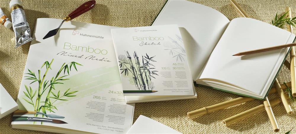 Hahnemühle begynte å bruke bambusfibre, som er et raskt voksende og bærekrafitg råmateriale, i 2008 da de lanserte mixed media papiret Bamboo, som er laget av 90% bambusfibre og 10% bomull. De har nå utvidet utvalget med skissepapir og skissebøker i bambus.