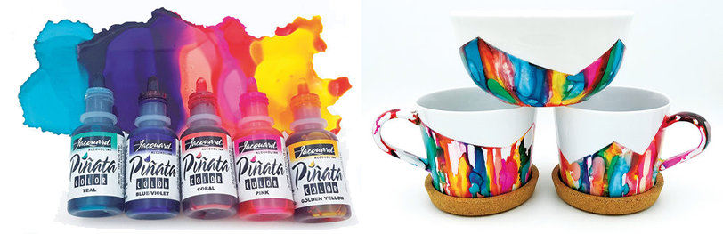 Piñata Alcohol Ink er fargesterke, hurtigtørkende alkoholfarger for alle harde overflater, inkludert glass, metall, plast, keramikk, stein, lær, harpiks, polymer leire, Yupo®-papir, mm. Piñata Alcohol Ink er vannfaste og renses med alkohol, alkohol aktiverer også fargene og gir unike effekter som ikke oppnås med vannbasert blekk.