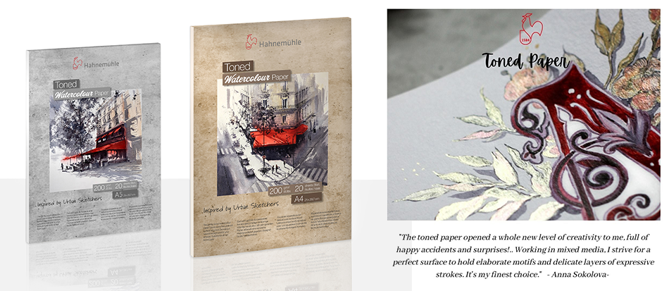 Hahnemühle Toned Watercolour Pads er akvarellblokker med tonet papir i beige og grå. Mange har ventet på dette produktet i lang tid - tonet akvarellpapir i blokkformat. Denne papirkvaliteten, kombinerer ønsket om et tonet papir med ekte, klassisk akvarellstruktur.
