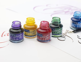 Calligraphy Ink fra Winsor & Newton er et kalligrafiblekk med gode, lysekte fargepigmenter. Blekket er lysekte og permanent når den er tørket. Calligraphy Ink kommer i 18 ulike farger og i ulike sett.
