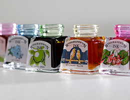 Drawing Ink er det gode gammeldagse tegneblekket i de ikoniske små krukkene. Blekket er hurtigtørkende, permanent og transparent. Serien består av 26 ulike farger i krukker på 14 ml, i tillegg til sort i 4 størrelser.