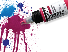 Golden High Flow - En tynn, svært pigmentsterk akrylmaling fra Golden i kunsterkvalitet. Kan brukes til alle flytende teknikker, airbrush, tusj, fyllepenn med mer. Finnes i 49 farger, og tilgjengelig i 30ml og 118ml flasker.