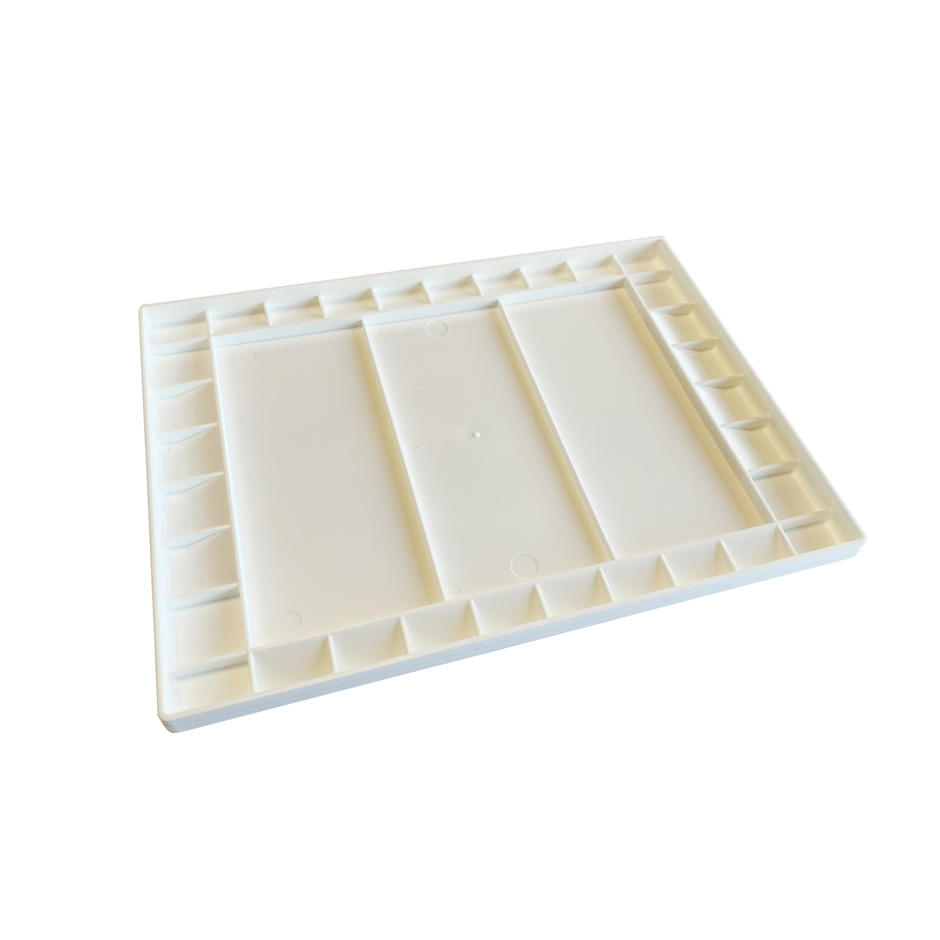 Stor plastpalett med 32 rom og 3 blandeflater og lokk. 30x40x4,5 cm