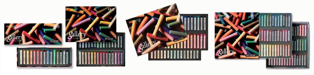 Populær blant både amatører og erfarne kunstnere. Gallery pastellene er ekstra myke, runde og laget av de fineste pigmentene kalsiumkarbonat, og gir en jevn, fløyelsaktig struktur som er perfeket for blanding, fargegraderinger, lag-på-lag med mer. Alle fargene har høy lysekthet og er falmebestandige. Gallery Pastel Finnes i løse og i sett med 15, 30, 60 og 90 farger. Hvert sett har et godt balansert utvalg av assorterte farger for tegning av ethvert motiv.