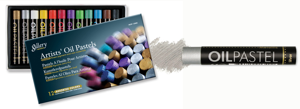 Mungyo Artists' Oil Pastel i 12 metalliske farger i kunstnerkvalitet. Oljepastellen er runde og myke, og er designet for kunsnerisk skissing, tegning og illustrasjon.