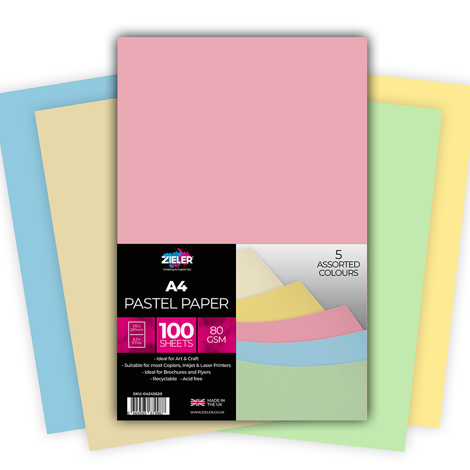 Zieler Assorted Pastel Paper, 80g, 100 ark